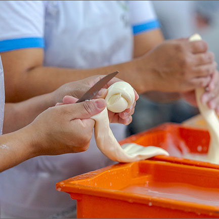 No início, eramos bem pequenos. Tínhamos na época um laticínio montado para muito além da nossa produção diária. Mesmo assim, confiamos e acreditamos no potencial da nossa empresa. Nossa produção contava com apenas o leite pasteurizado, mas poucos anos depois, conseguimos ampliá-la, com a implementação do queijo muçarela.